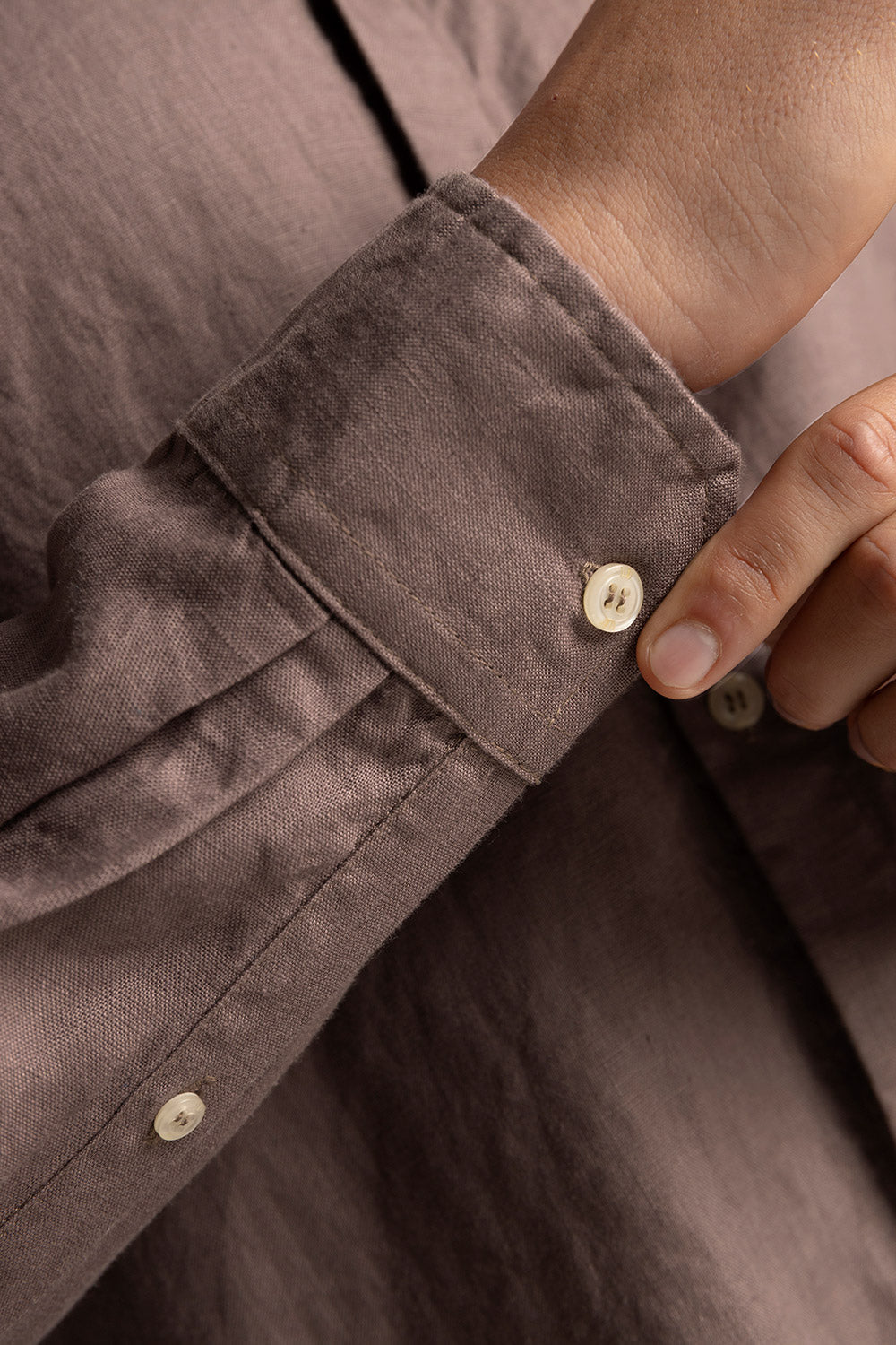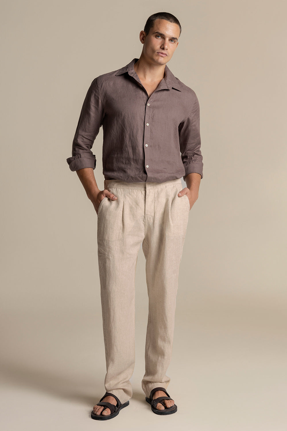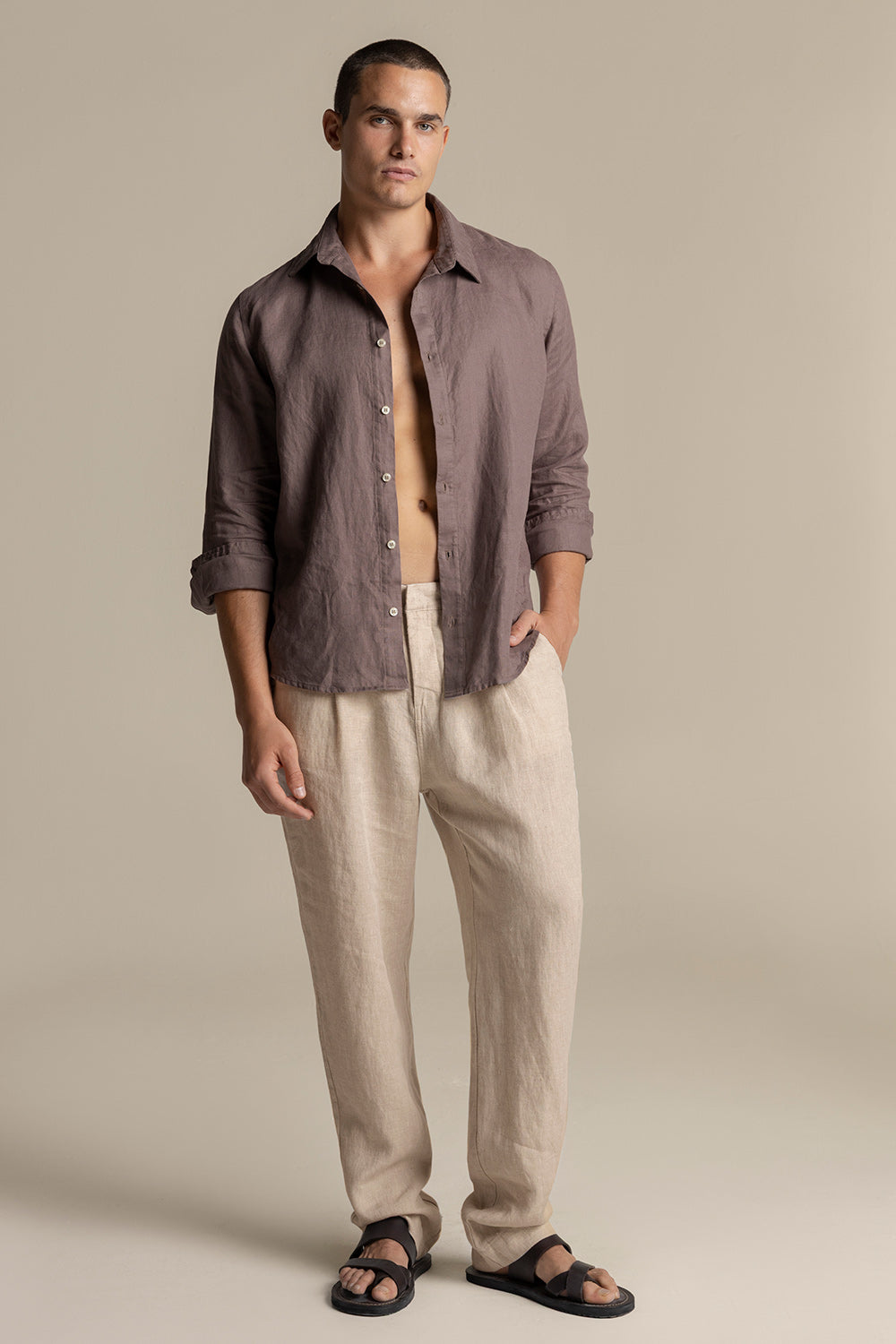 Camisa Fiji en lino café mocca. Manga larga, slim fit y cuello clásico. Color café mocca, Ref. SH57C61
