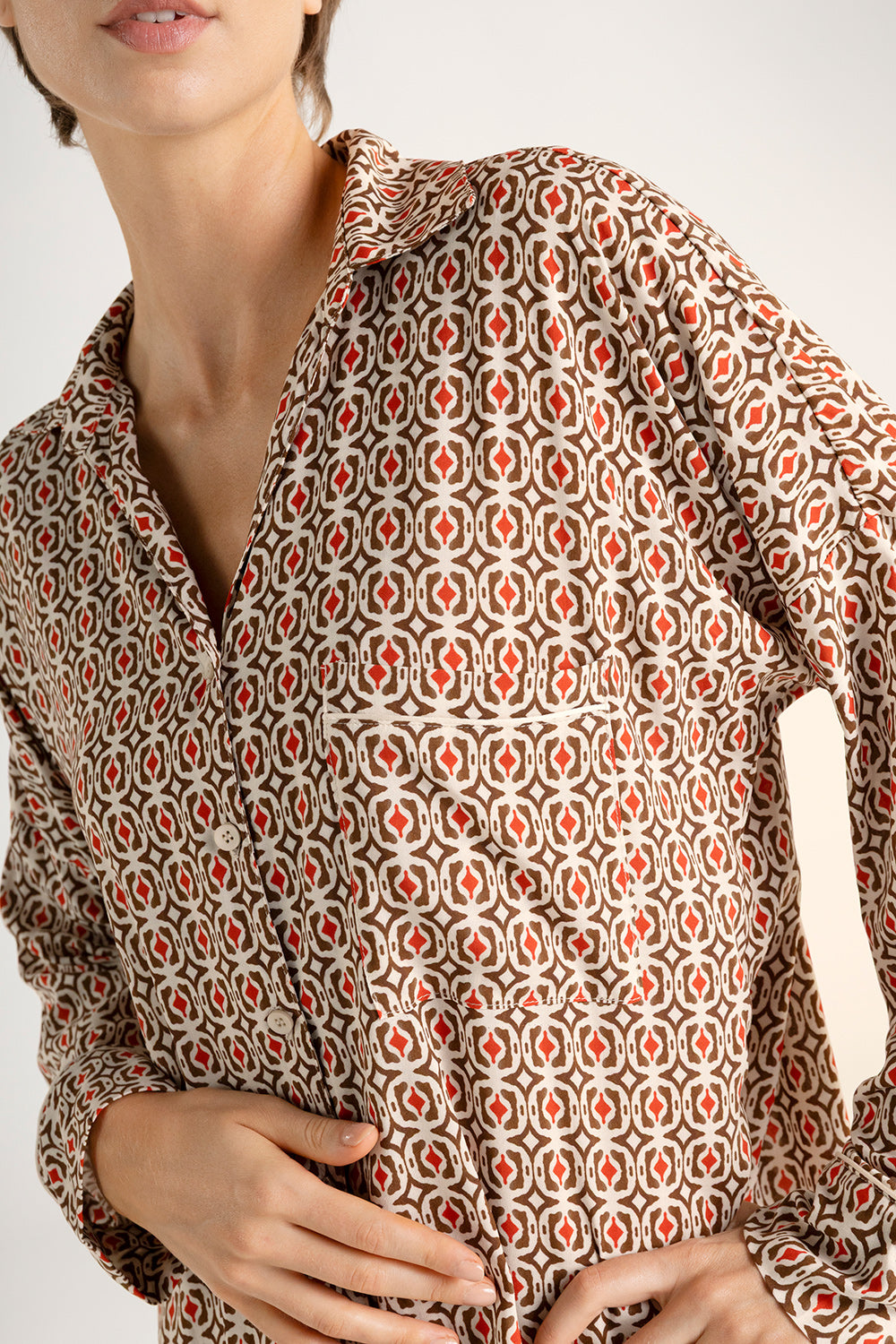 Camisón elaborado en viscosa con estampado corbatero, cuello camisero, perilla de botones y bolsillo de parche en delantero, manga larga con puño. Color estampado, Ref. 2534061