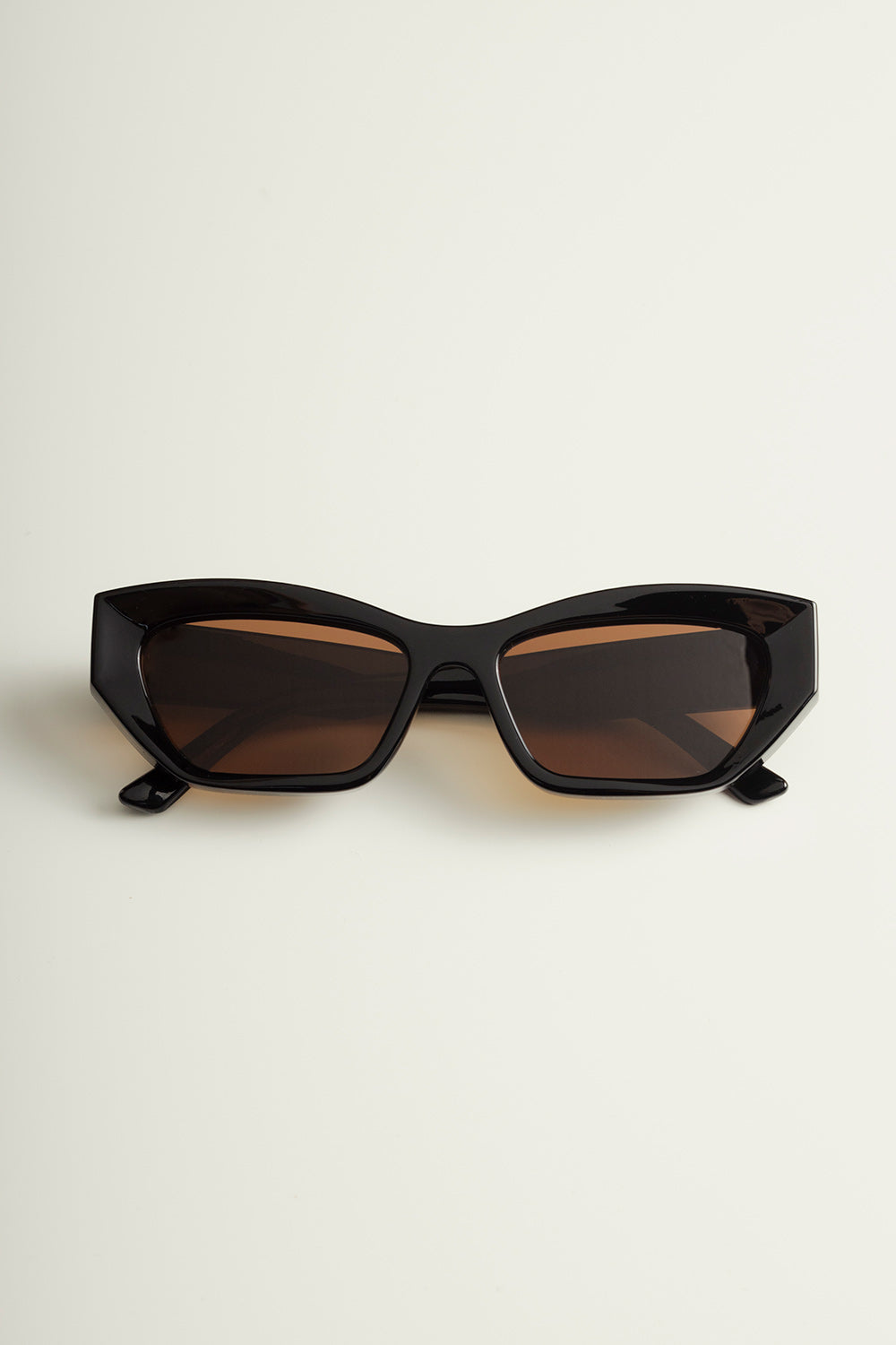 Gafas con montura negra; lentes cafés con protección UV. Color negro, Ref. 0S52N61