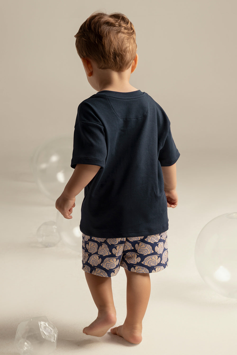 Camiseta kids en algodón, manga corta, silueta oversized, cuello redondo y con estampado de pez localizado delantero. Color azul oscuro, Ref. SK06A62