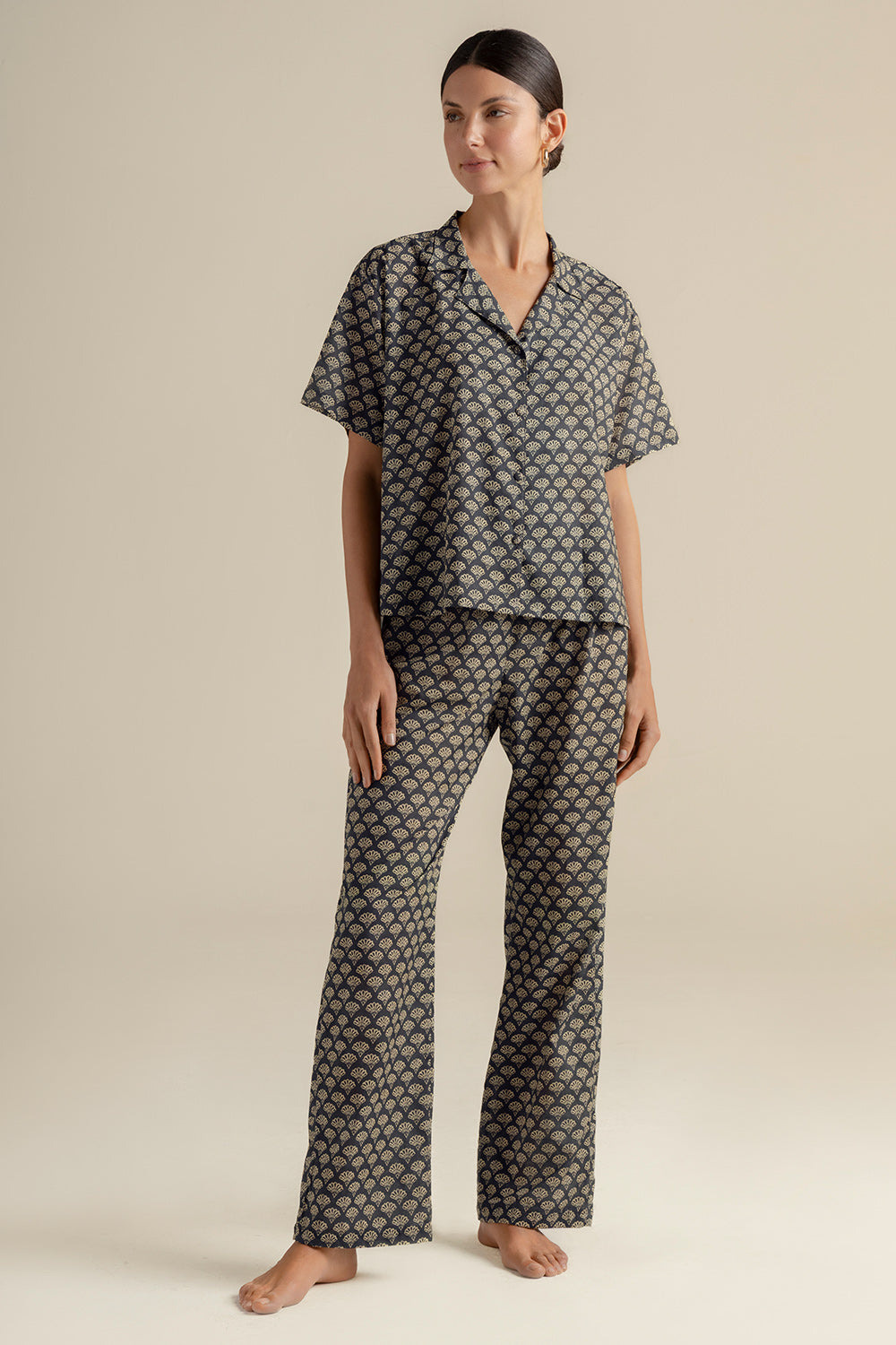 Pijama pantalón elaborado en algodón con estampado floral, camisa manga corta, con cuello resort y perilla de botones, pantalón clásico de bota recta. Color estampado, Ref. 0576052