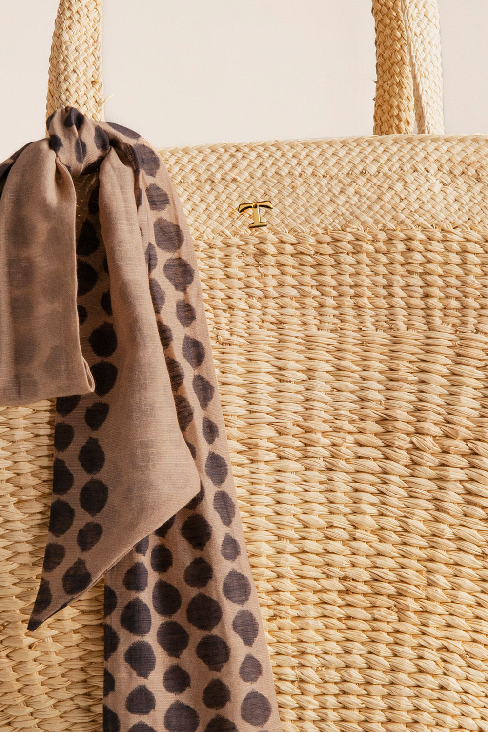 Bandana en tela estampada de lunares y moneda en baño de oro grabada con la ''t'', como detalle distintivo de la marca. largo total: 123 cm, ancho: 9 cm. Color café / negro, Ref. 0S68062