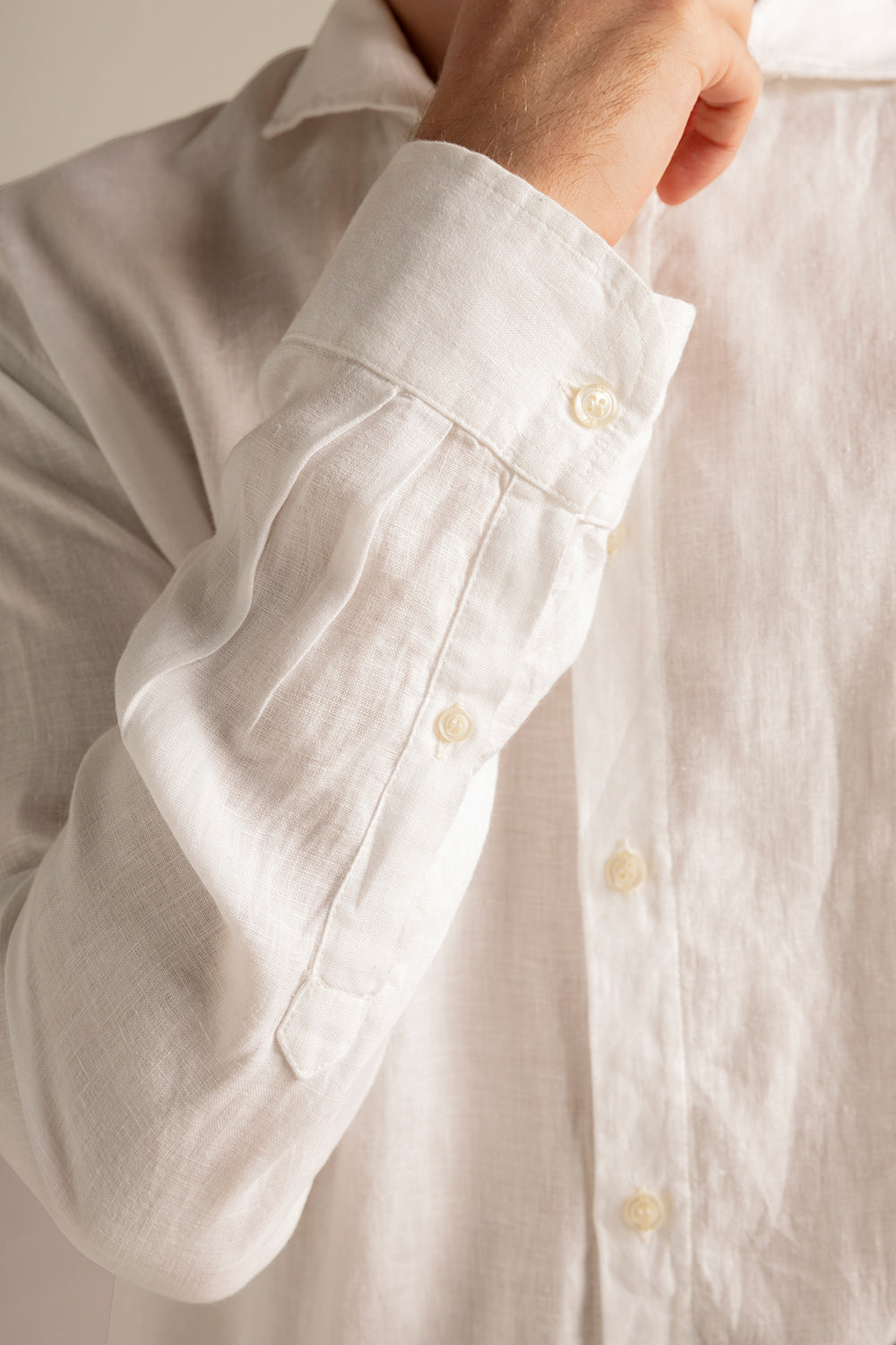 Camisa fiji en lino, manga larga, silueta ajustada con pinzas en espalda y cuello clásico. Color blanco, Ref. SH71031