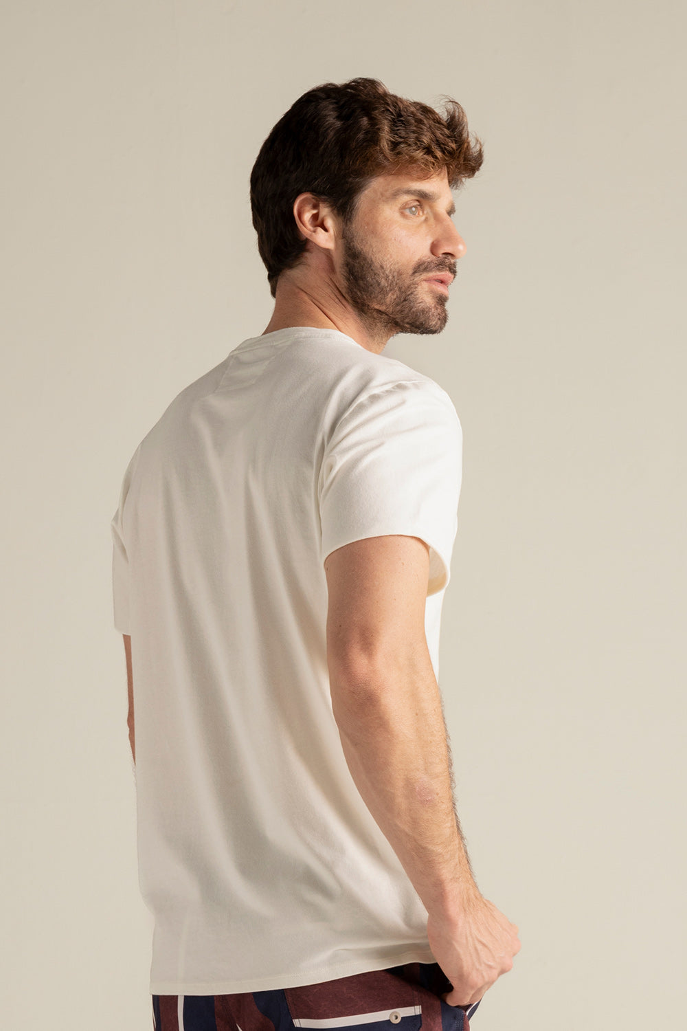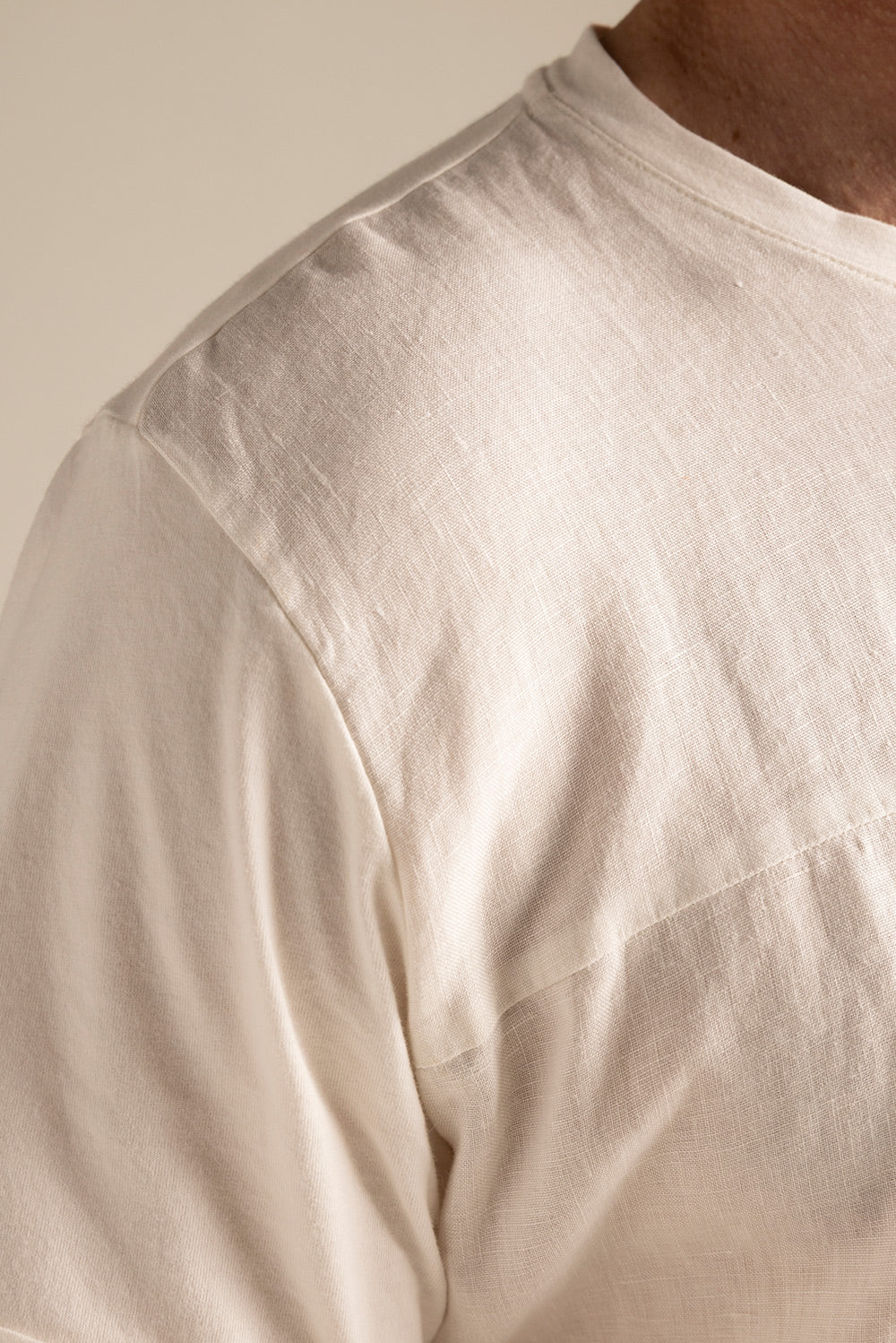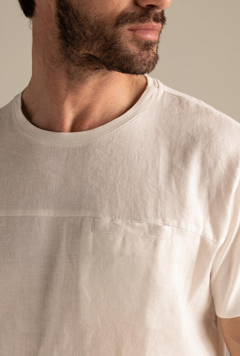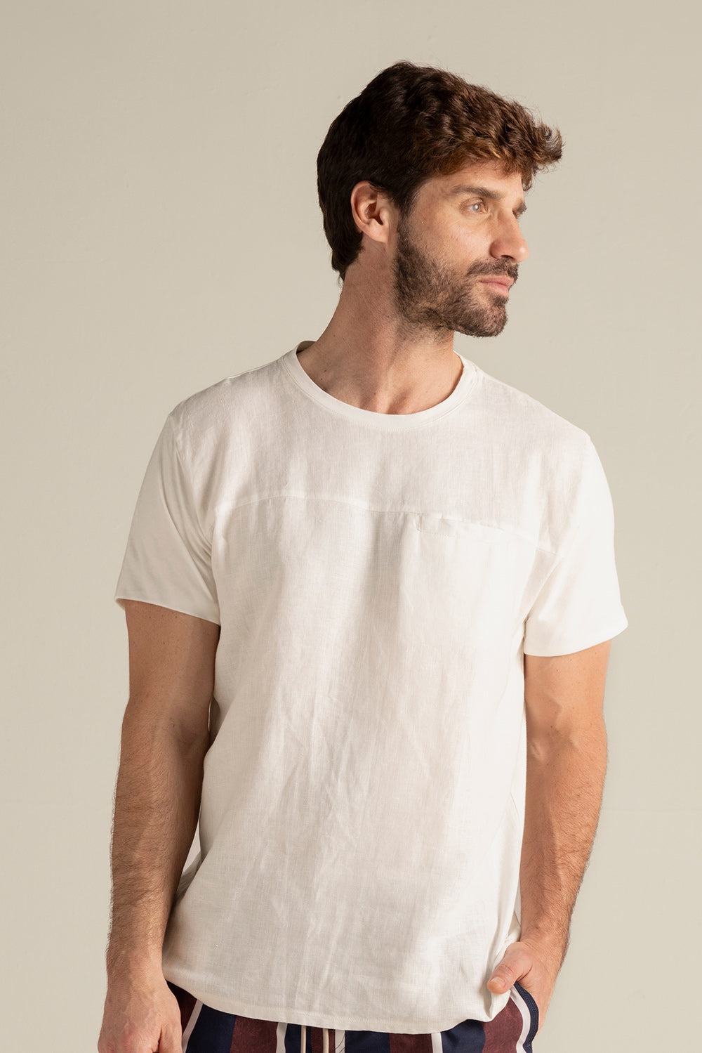 Camiseta jamaica con frente en lino, espalda y mangas en algodón, manga corta y bolsillo de ribete en frente. Color blanco, Ref. SH06001